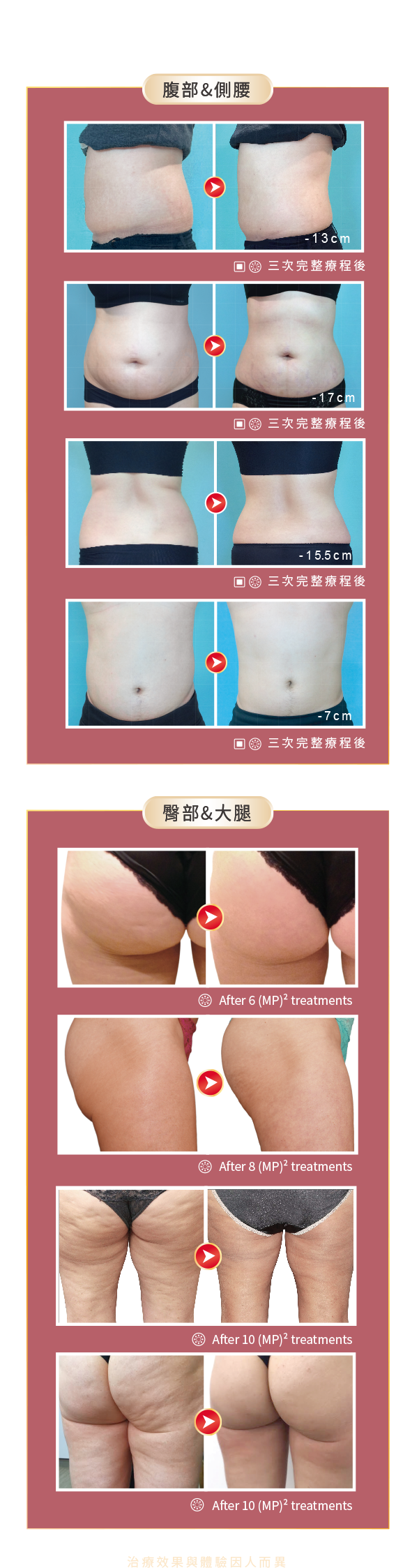 建議3次雷射療程並搭配(MP)²探頭療程可達到最佳效果。